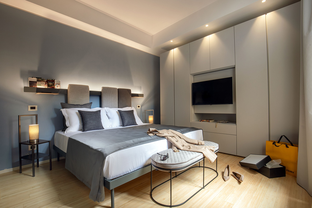 This Suite is characterized by an elegant entrance that leads to a large living room, where a few steps lead to the bedroom and its elegant bathroom. The internal views guarantee a high level of comfort.